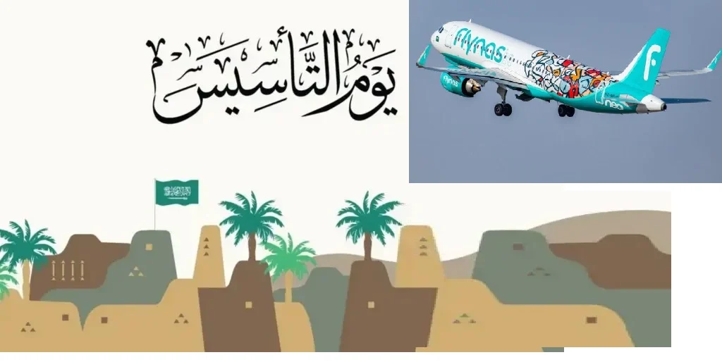 عروض الطيران في السعودية يوم التأسيس 2024. في هذا اليوم الفخري تسارع شركات الطيران والمطاعم والمحال التجارية لتقديم أفضل عروضها في تخفيضات قد تصل إلى نصف القيمة.