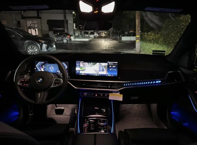 تمتاز بي إم دبليو X7 2025 لشاشة عرض 12.3 بوصة، نظام صوتي من هارمان كاردون، مقاعد أمامية مدفأة وقابلة للتعديل، بالإضافة إلى تصميم داخلي فاخر مع لمسات من الخشب والجلد، مساحات رحبة.