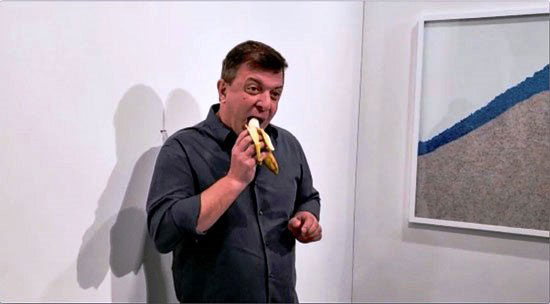 وفي الحادثة السابقة، لم يكن الفنّان كاتيلان مكترثاً بأكل الموزة، حيث قال: “الموزة هي الفكرة”.