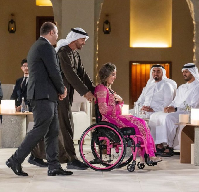 إيمان الصفاقسي.. تداول نشطاء مواقع التواصل الاجتماعي، مقطع فيديو يظهر فيه رئيس الإمارات الشيخ محمد بن زايد وهو يستمع خلاله لـ إيمان الصفاقسي “فتاة تونسية” وهي تجلس علي كرسي متحرك أثناء تكريمها لدورها البطولي خلال حريق حدث في العاصمة الإماراتية أبوظبي قبل عامين من الآن.