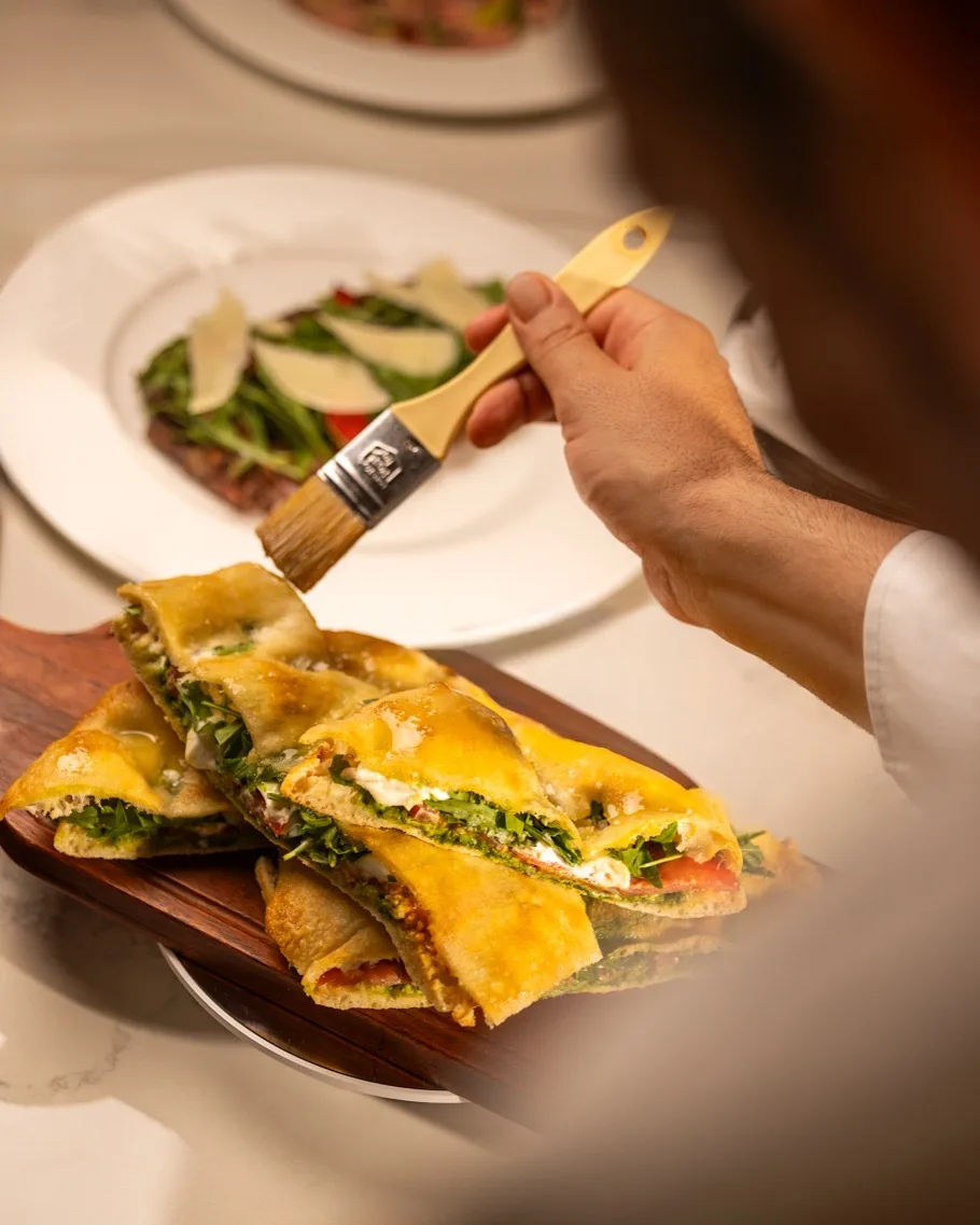 تبدأ رحلة الطعام بمقبلات فاخرة مثل بوراتا بوجليز الكريمية وكرات الأرانشيني الذهبية على الطريقة الصقلية. ثم تتبعها أطباق الباستا المصنوعة يدوياً مثل ريغاتوني مانشيني مع فطر البورشيني والتروفل، والتي تجسد براعة التقنيات التقليدية بحلة عصرية أنيقة. أما الأطباق الرئيسية مثل القاروص على الطريقة الليغورية وأوزوبوكو ميلانيزي المطهو ببطء فتقدم تجربة مليئة بالغنى والدفء والفخامة.