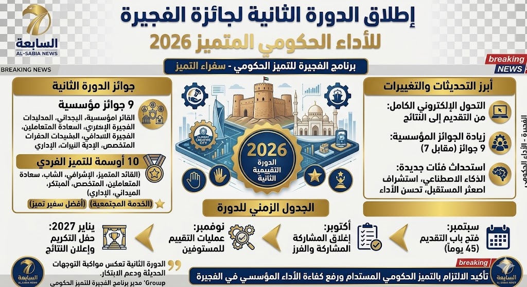 أطلق برنامج الفجيرة للتميز الحكومي الدورة الثانية لجائزة الأداء الحكومي المتميز لعام 2026.