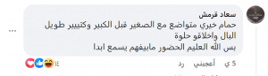 كثيرون اعتبروا تصرف حمام خيري تصرفًا متعاليًا وغير مبرر. أحدهم قال: “مافي أي مبرر لتصرف حمام خيري، لذلك لازم يطلع ويعتذر أحسن ماتنمسح بكرامته الأرض”. وآخر أشار إلى أن الفنانة أم كلثوم لو كانت على المسرح، لكانت تصورت مع الطفل بكل هدوء، مضيفًا: “كان يكفي أن يطبطب على كتف الطفل ليكبر في نظره وفي نظر الجمهور”.