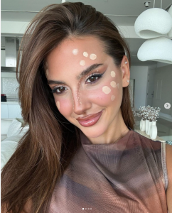 بالإضافة إلى إبراز جمال الوجه والعيون بالمكياج الترابي، تستكمل المشهورات الصيحة بإضافة نقاط من الكونسيلر الفاتح على الجبين والرقبة والوجه، بما يتناسب مع شكل الغزال الحقيقي الذي يتميز بالنقاط البيضاء على جسده.
