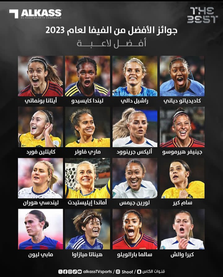 وتشمل القائمة أيضًا 4 لاعبات من إنجلترا، و3 من منتخب أستراليا، علمًا أن القائمة ضمت 16 لاعبة.