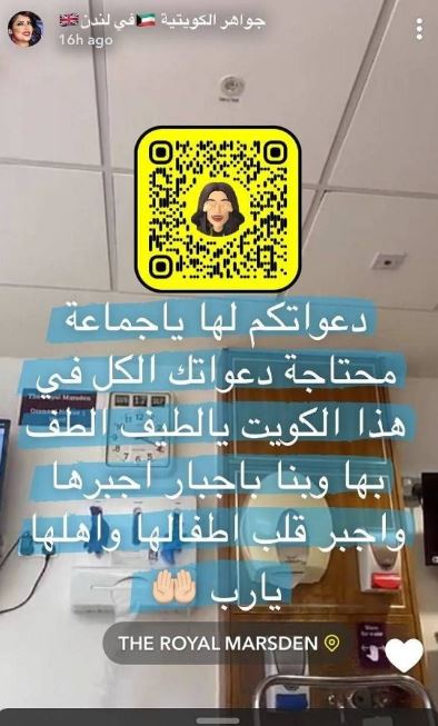 حيث طلبت عائلة الفنانة الكويتية جواهر من الجمهور الدعاء بالشفاء لها، فهي لم تعد تتلقى العلاج بعد الآن، مؤكدين أنها حاليًا “تحت رحمة الله”.