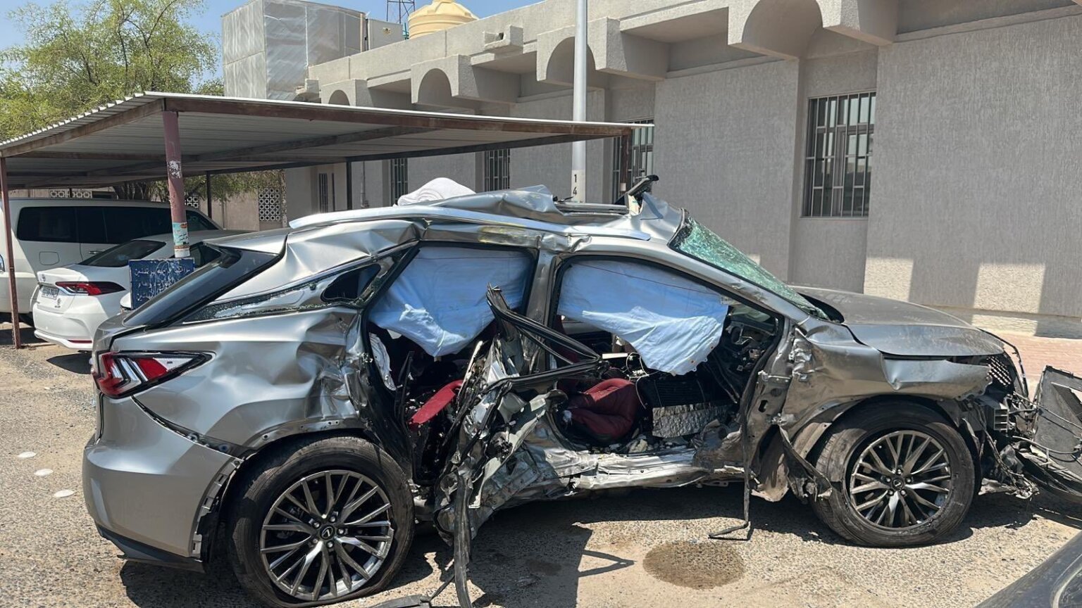 وظهرت سيارة الكويتية فاطمة المؤمن، محطمة بالكامل، بعدما تجاوزت الإشارة الحمراء وتسببت في وفاة شخصين وإصابة آخرين.