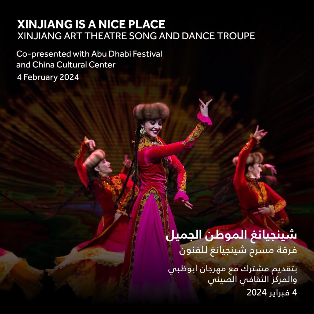 العرض بتقديم مشترك مع مهرجان أبوظبي والمركز الثقافي الصيني احتفالاً بالعام الصيني الجديد، حيث تم إطلاق العمل الملحمي الموسيقي الراقص “سنة صينية جديدة سعيدة – شينجيانغ موطنٌ جميل” والذي يقدّم ظهوراً استثنائياً يدمج الأداء والموسيقى والغناء.
