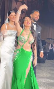 كما تألقت الفنانة دينا، في حفل الزفاف، وقدمت وصلة رقص مميزة مع العروسين، أضفت على الحفل أجواءً من البهجة والمرح.