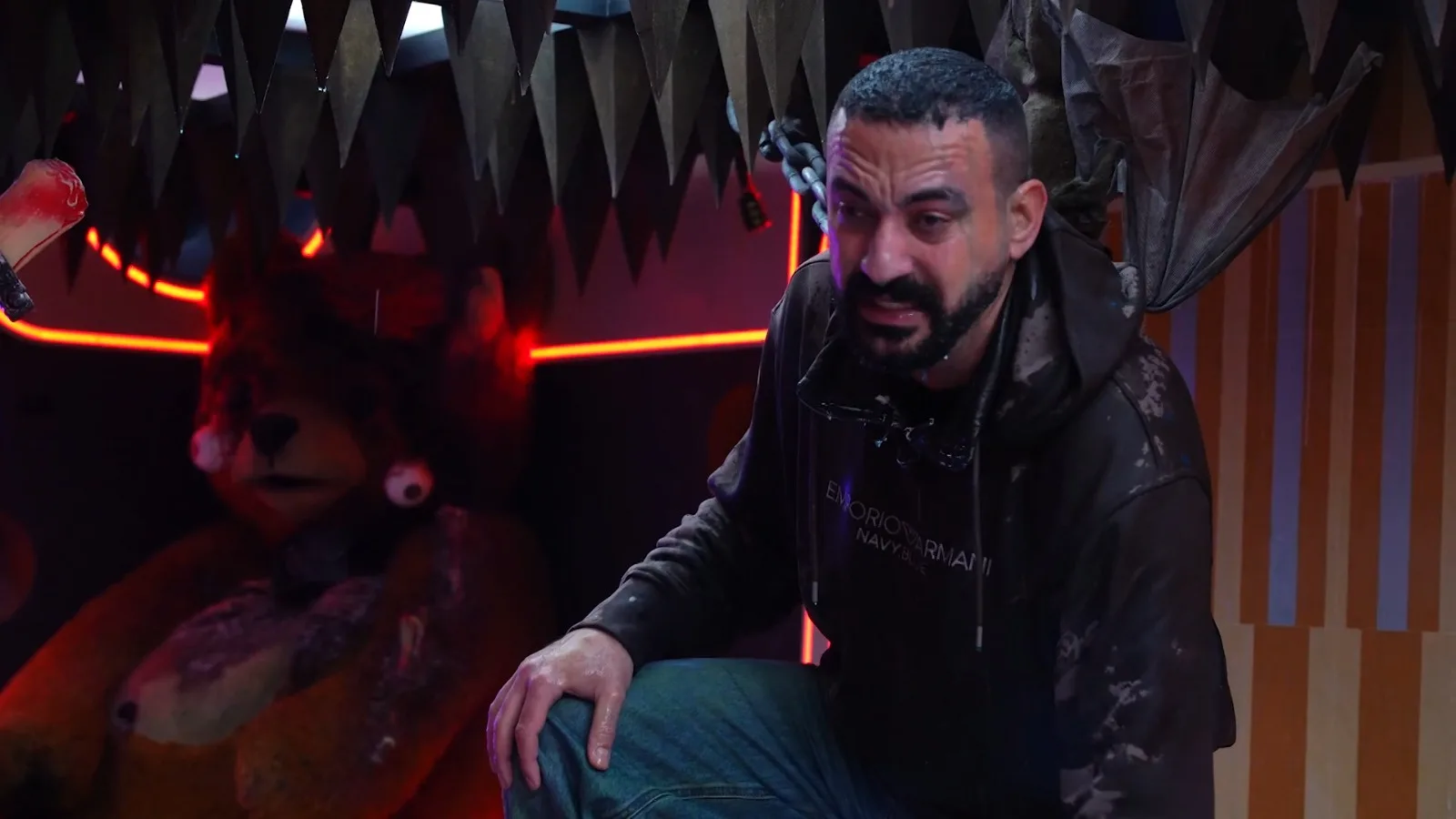 منذ اللحظات الأولى، بدا الارتباك على ملامحه، ومع تصاعد أحداث المقلب، ارتفعت صرخاته واستغاثاته، مطالبًا بوقف الحلقة فورًا. لم يكن الأمر مجرد خوف عابر، بل حالة ذعر حقيقية سيطرت عليه، خاصة مع الإيحاء بإمكانية الغرق وسط المياه والظلام الكثيف، إلى جانب ظهور غوريلا بشكل مفاجئ زاد المشهد توترًا.