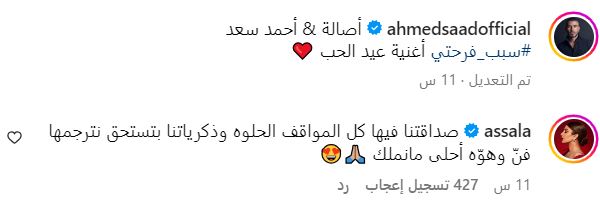 وفي رد أصالة على المنشور الذي شاركه أحمد سعد، علقت أصالة على إنستقرام بالقول: “صداقتنا فيها كل المواقف الحلوة وذكرياتنا بتستحق نترجمها فنّ وهوّه أحلى مانملك”.