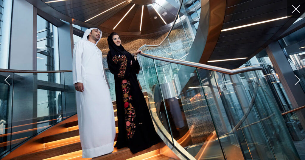 تتزين المنصة في المستوى 125 في قمة البرج “برج خليفة”، على علو 456 متر بالمشربيات العربية، وتوفر إطلالة بانورامية خلابة.