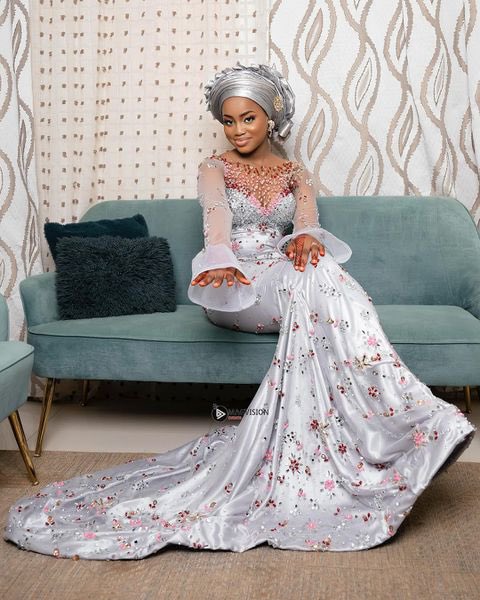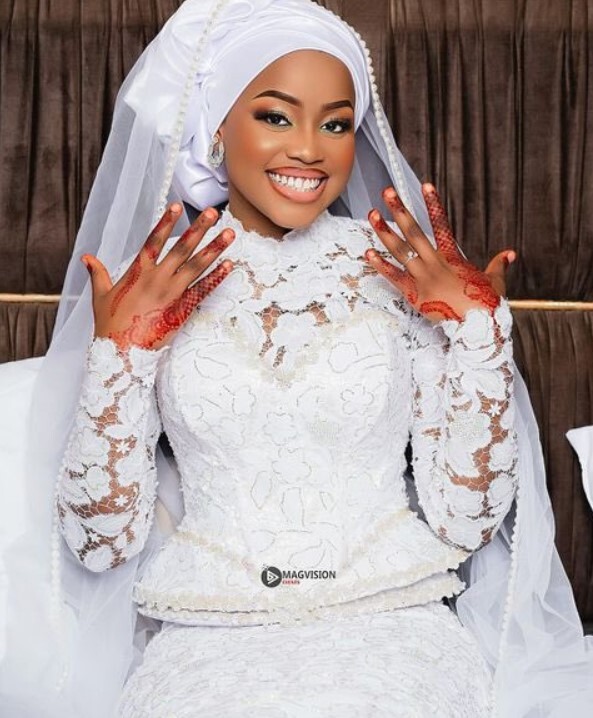 وأظهرت صور متداولة، زوجة ماني، وهي ترتدي فستان زفاف أبيض مطرز، مع طرحة بيضاء مطرزة.