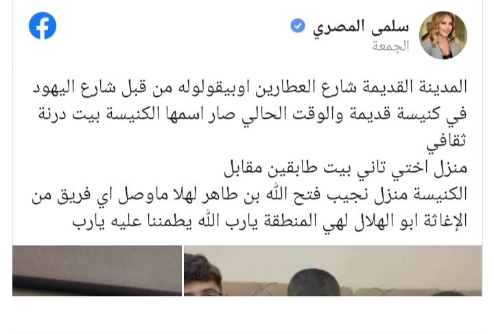 وكتبت المصري: “ابن أختي وزوجته وأولاده مفقودون في ليبيا، سكان مدينة قديمة بالقرب من سوق ظلام وكنيسة، يلي بيعرف أي شيء عنهم يبعث لنا، اسمه فتح الله منصف بن طاهر، يا رب يرجّعه بخير وسلامة”.