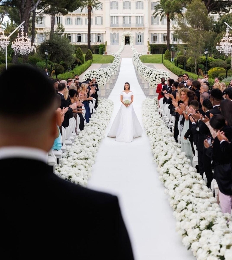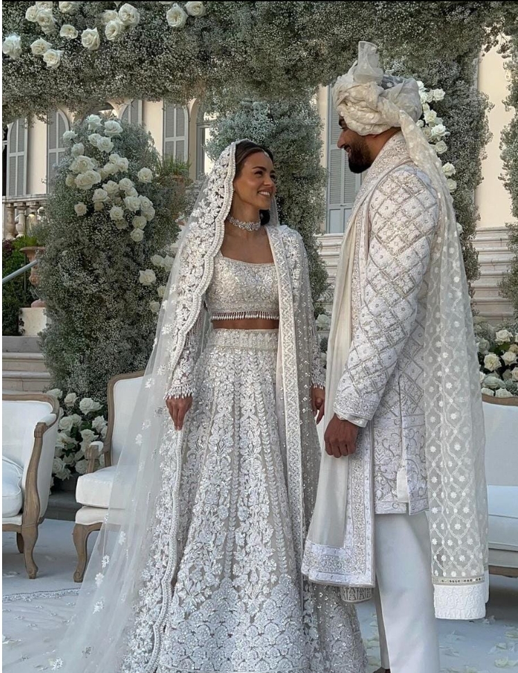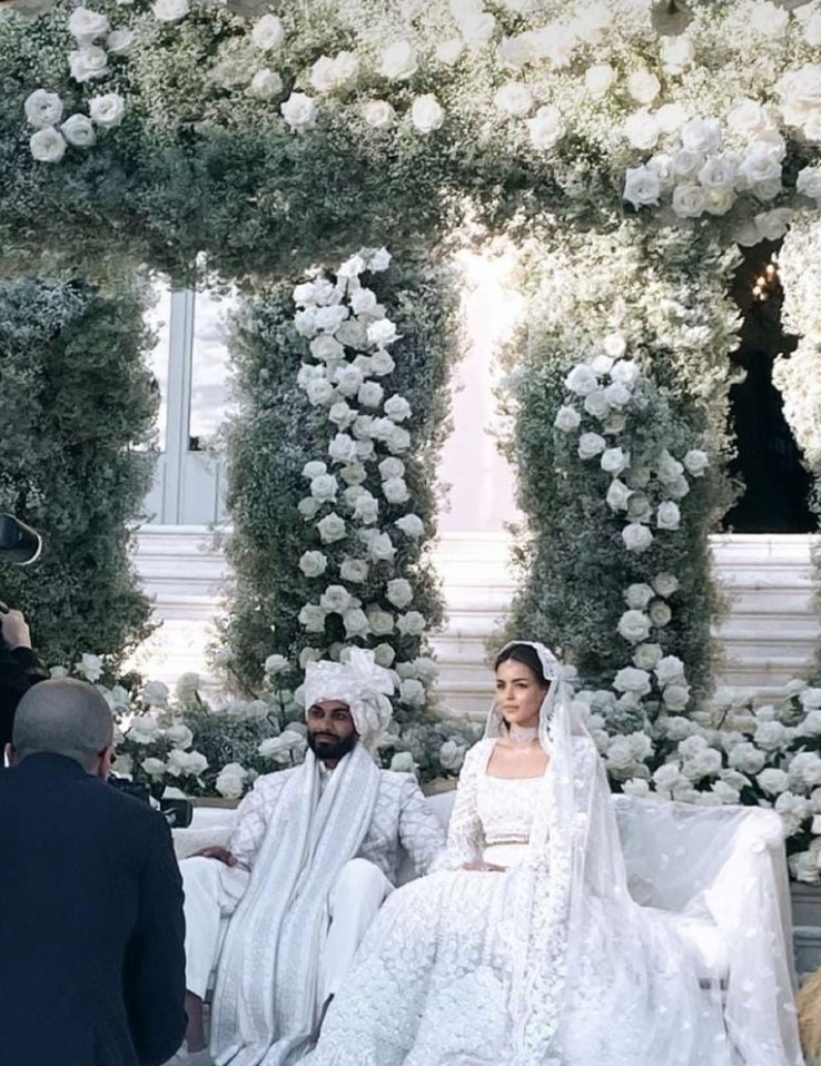 بدأ الحفل الأول بليلة الحناء يوم الخميس، ثم الزفاف الجمعة الماضية في فندق Grand Allée بجنوب فرنسا. واحتفل الزوجان يوم السبت في الهند بملابس هندية تقليدية من تصميم زهير مراد.