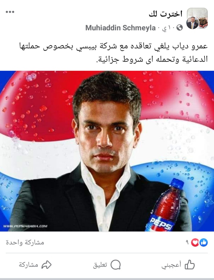 حقيقة تخلي عمرو دياب عن حملة شركة بيبسي