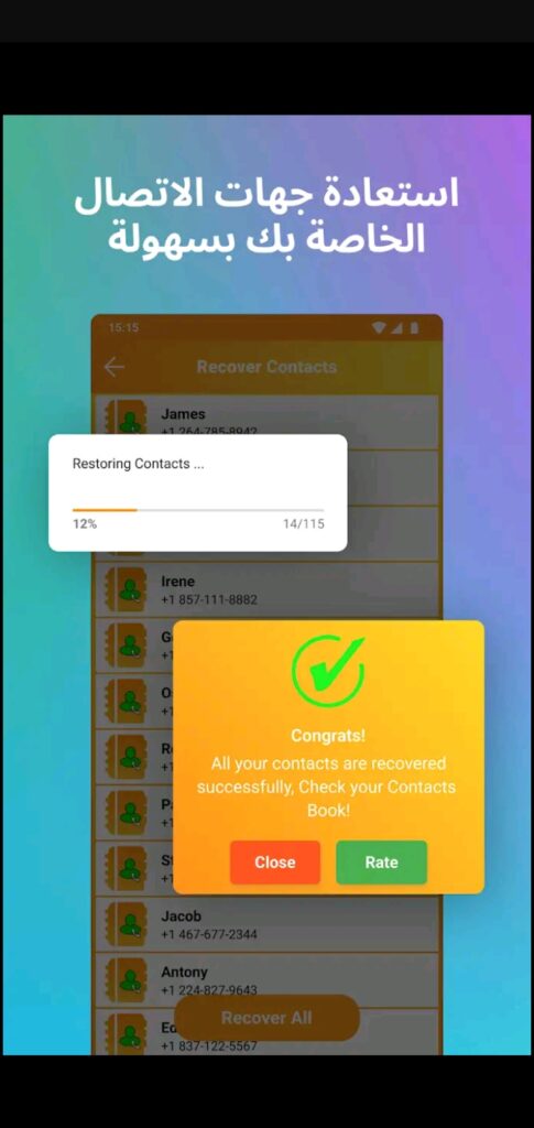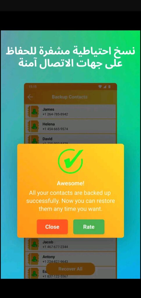 مع هذا التطبيق لن تخشى أن تفقد أي رقم، يمكنك ببساطة إنشاء نسخة احتياطية لجهات الاتصال الخاصة بك إذا لم تفقد أيًا منها حتى الآن، ولكن إذا فقدت بالفعل أي أرقام أو قمت بحذف واحد أو كل جهات الاتصال الخاصة بك عن طريق الخطأ، يمكنك أيضًا استعادتها جميعًا بنقرة واحدة.