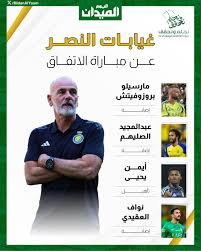 يواجه فريق النصر الأول لكرة القدم تحديًا جديدًا في مباراته المقبلة أمام القادسية، ضمن الجولة الحادية عشرة من دوري روشن السعودي، حيث أعلن المدرب الإيطالي ستيفانو بيولي عن استبعاد النجم البرازيلي أندرسون تاليسكا والمدافع الإسباني إيمريك لابورت من القائمة.