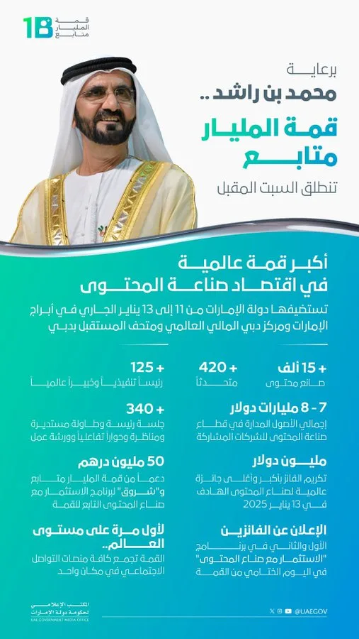 - قمة المليار متابع 2025.. تسلط الضوء على “المحتوى الهادف”