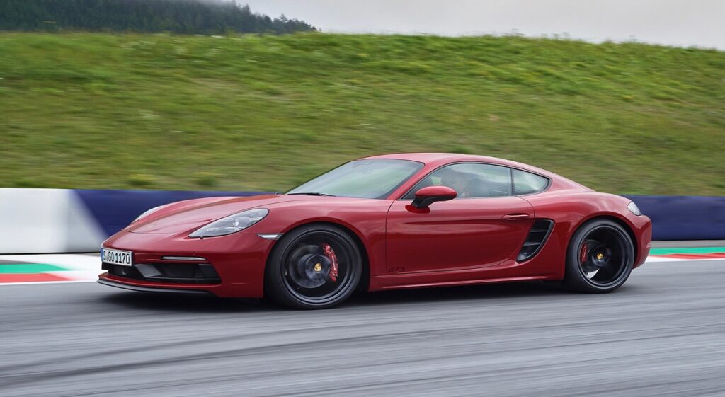 سيارتي بورش 718 بوكستر و كايمان من طراز إس الرياضي الذي تم إطلاقه بين عامي 2018 و 2023 ، تعتمد على محرك رباعي الأسطوانات بسعة 2.5 لتر تربو بقوة 345 حصان و 420 نيوتن متر من عزم الدوران، لتتمكن كلا السيارتين من الوصول إلى سرعة قصوى 284.8 كم/ ساعة.