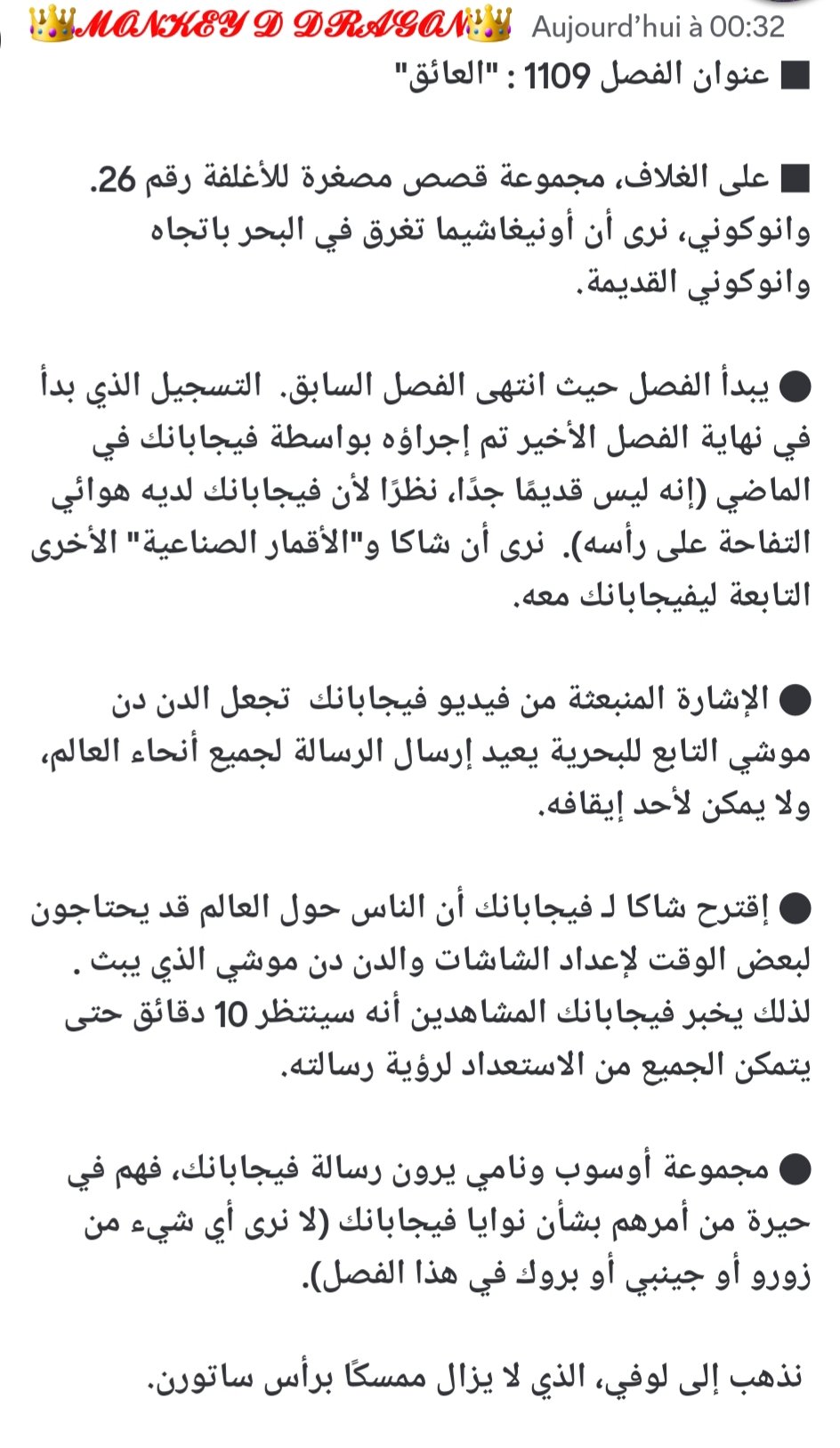 الملخص الكتابي مانجا ون بيس 1109