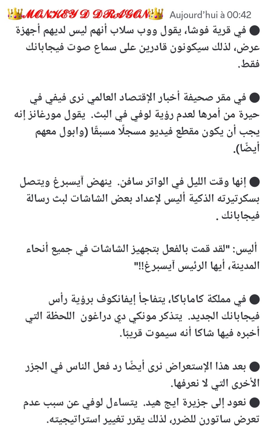 وجاء الملخص الكتابي من مانجا ون بيس 1109، على النحو التالي: