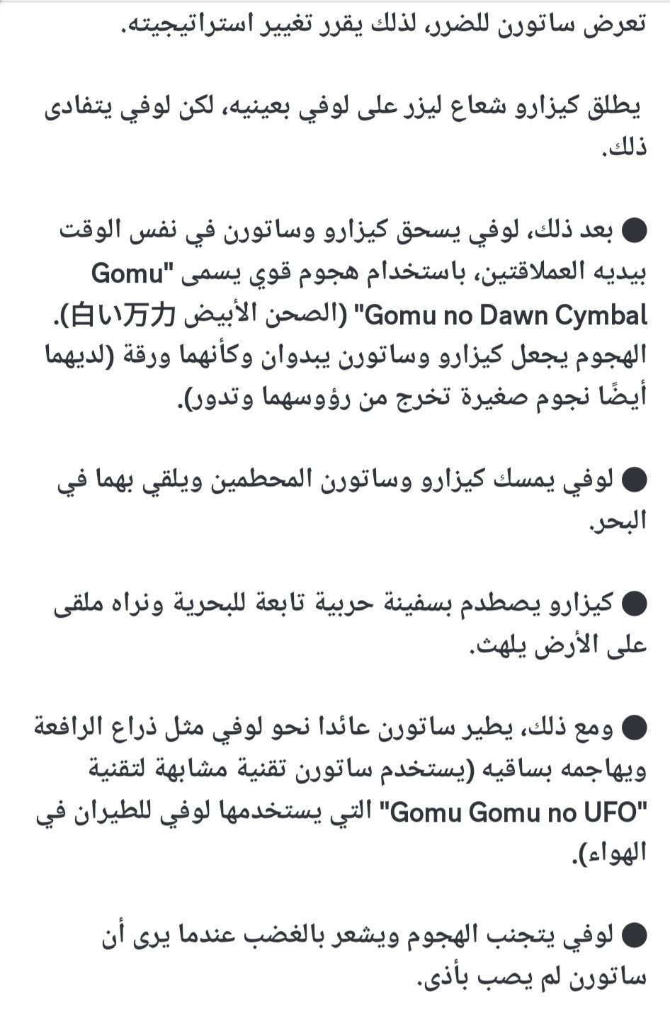 وتستمر المعركة بين لوفي وساتورن وكيزارو، الذي سيحصل على المساعدة من العمالقة ودوري وبروجي.