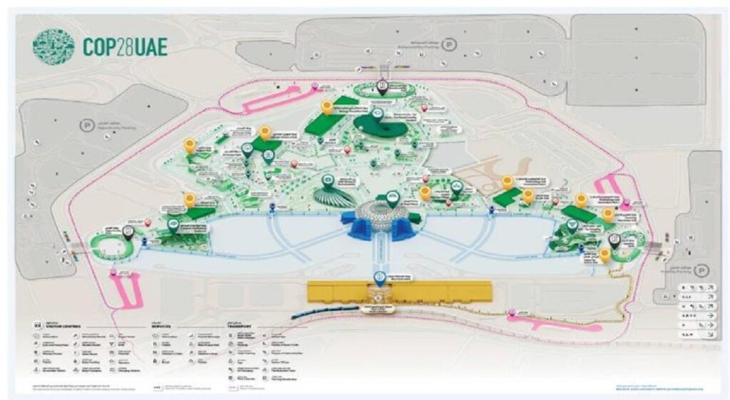 كما يوّفر الموقع الإلكتروني لمؤتمر الأطراف “COP28” خريطة مفصّلة للمنطقة الخضراء لضمان تسهيل المشاركة والاستفادة من برنامج فعاليات المنطقة.
