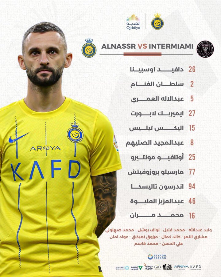 ضمت تشكيلة لاعبي انتر ميامي لمواجهة النصر كلا من :-