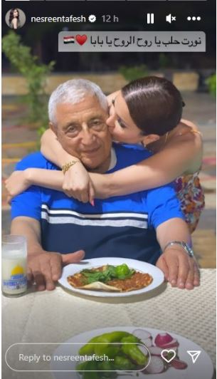 وعبر خاصية الـ “ستوري” على “إنستغرام”، نشرت نسرين طافش، صورة تجمعها بوالدها، قائلة: “نورت حلب يا روح الروح يا بابا”.