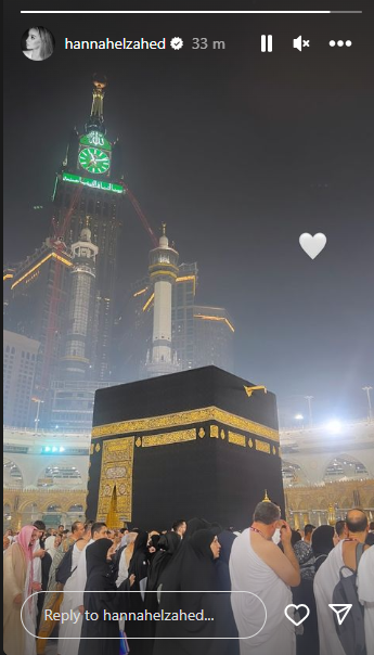 وفي ستوري عبر حسابها على الانستغرام، شاركت هنا الزاهد صورة أيضاً من أمام المسجد الحرام مع تعليق لرمز قلب باللون الأبيض.