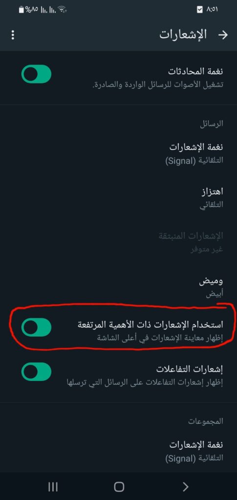 إشعارات ذات أولوية عالية على واتساب