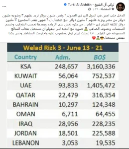 أعرب تركي آل الشيخ عن سعادته بهذا الإنجاز، مؤكدًا أن “ولاد رزق 3” هو خير دليل على أن “لا مستحيل مع العمل الجاد واحترام المشاهد”.